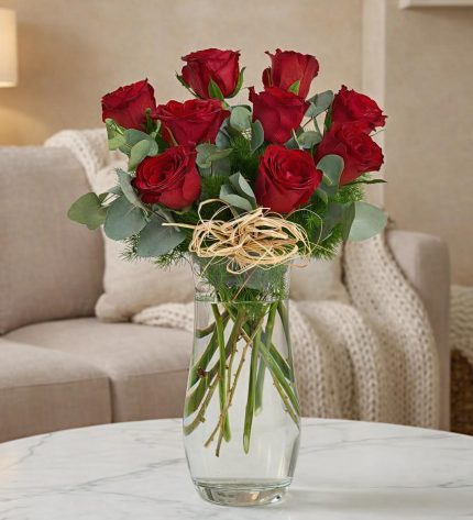 Sembolizm: 9 sayısı “sonsuzluk” ile ilişkilendirilir. Kırmızı güllerle birleştiğinde, “Seni ömrümün sonuna kadar seveceğim” mesajını verir. Vazo Şıklığı: Cam vazo,