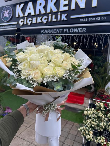 10 BEYAZ 8 PEMBE GÜL BUKETİ