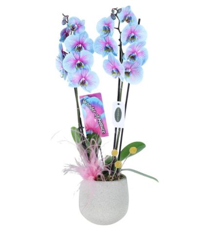Bambu orkide, klasik orkide formunun dışına çıkan, egzotik görünümüyle büyüleyen özel bir türdür. Adını bambuyu andıran boğumlu ve güçlü gövdesinden alan bu bitki, çiçek açtığında gövde boyunca sıralanan mis kokulu çiçekleriyle adeta bir görsel şölen sunar. Hem modern hem de rustik dekorasyonlara mükemmel uyum sağlayan bu bitki, dayanıklılığıyla da bilinir.